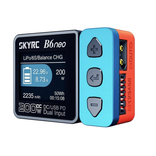 - B6Neo offers a battery discharger mode at rate up to 24W (when balance port connected), storage mode, and battery checker mode, making it a comprehensive tool for maintaining the health and readiness of your RC batteries.